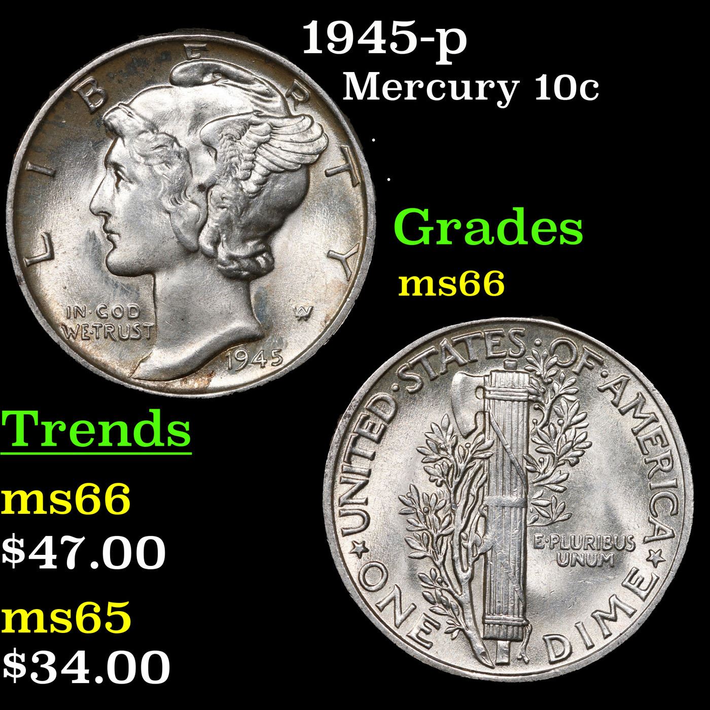 1945-p Mercury Dime 10c Grades GEM+ Unc.