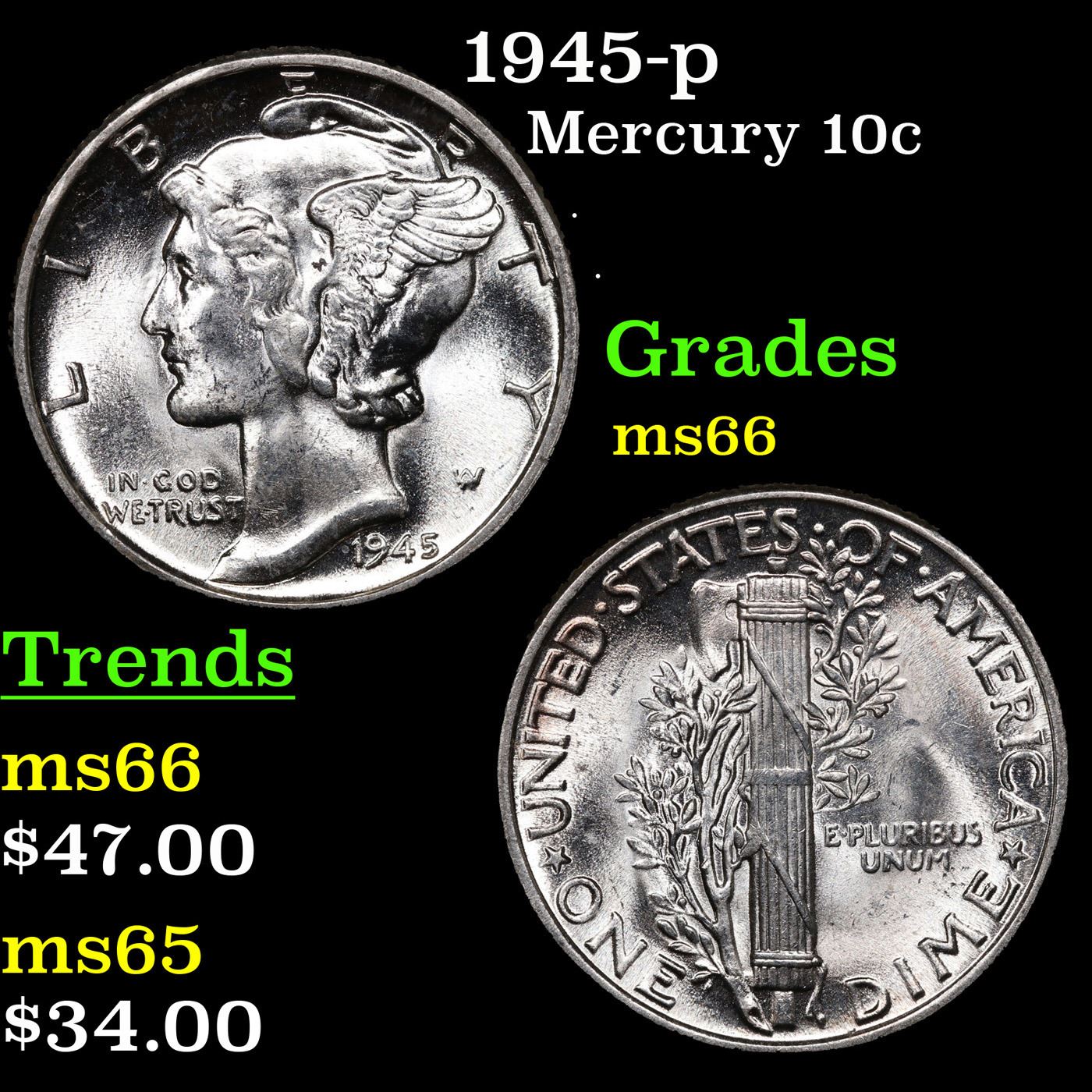 1945-p Mercury Dime 10c Grades GEM+ Unc.
