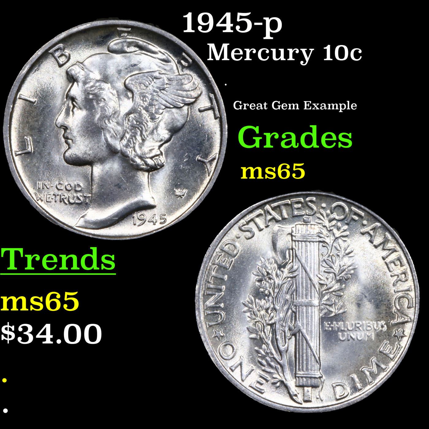 1945-p Mercury Dime 10c Grades GEM Unc.