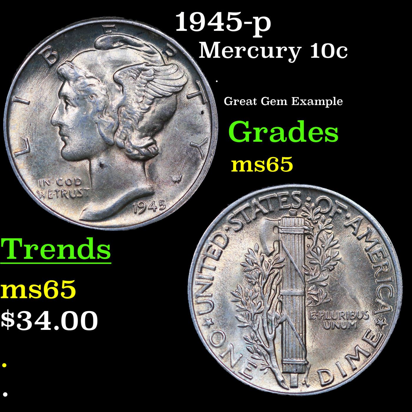 1945-p Mercury Dime 10c Grades GEM Unc.