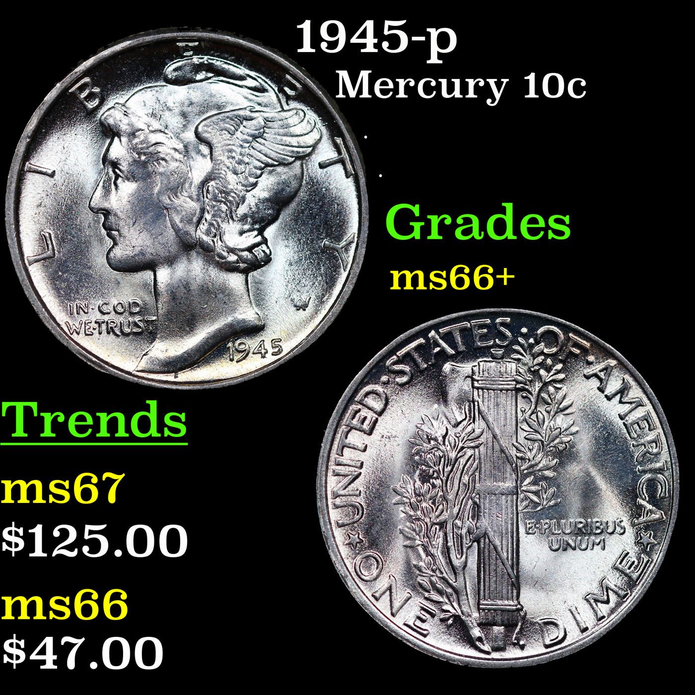 1945-p Mercury Dime 10c Grades GEM++ Unc.