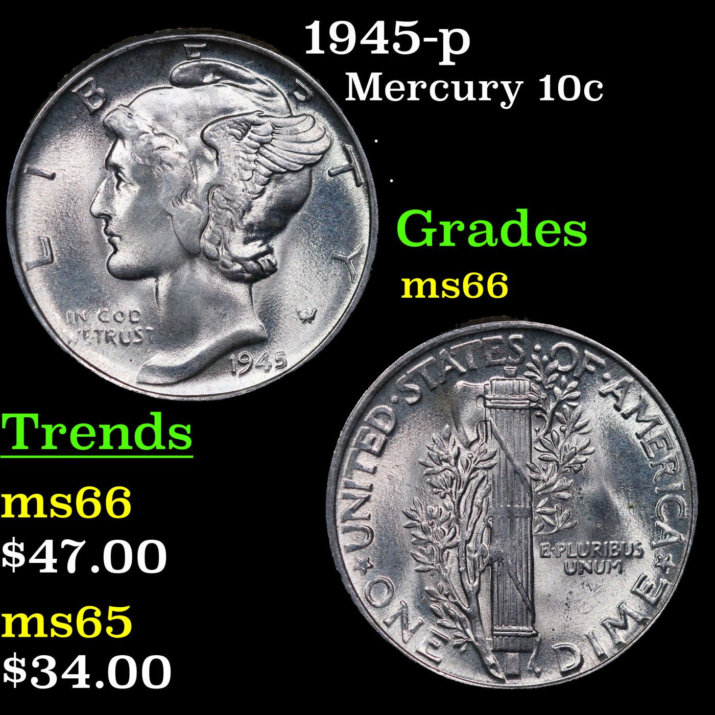 1945-p Mercury Dime 10c Grades GEM+ Unc.