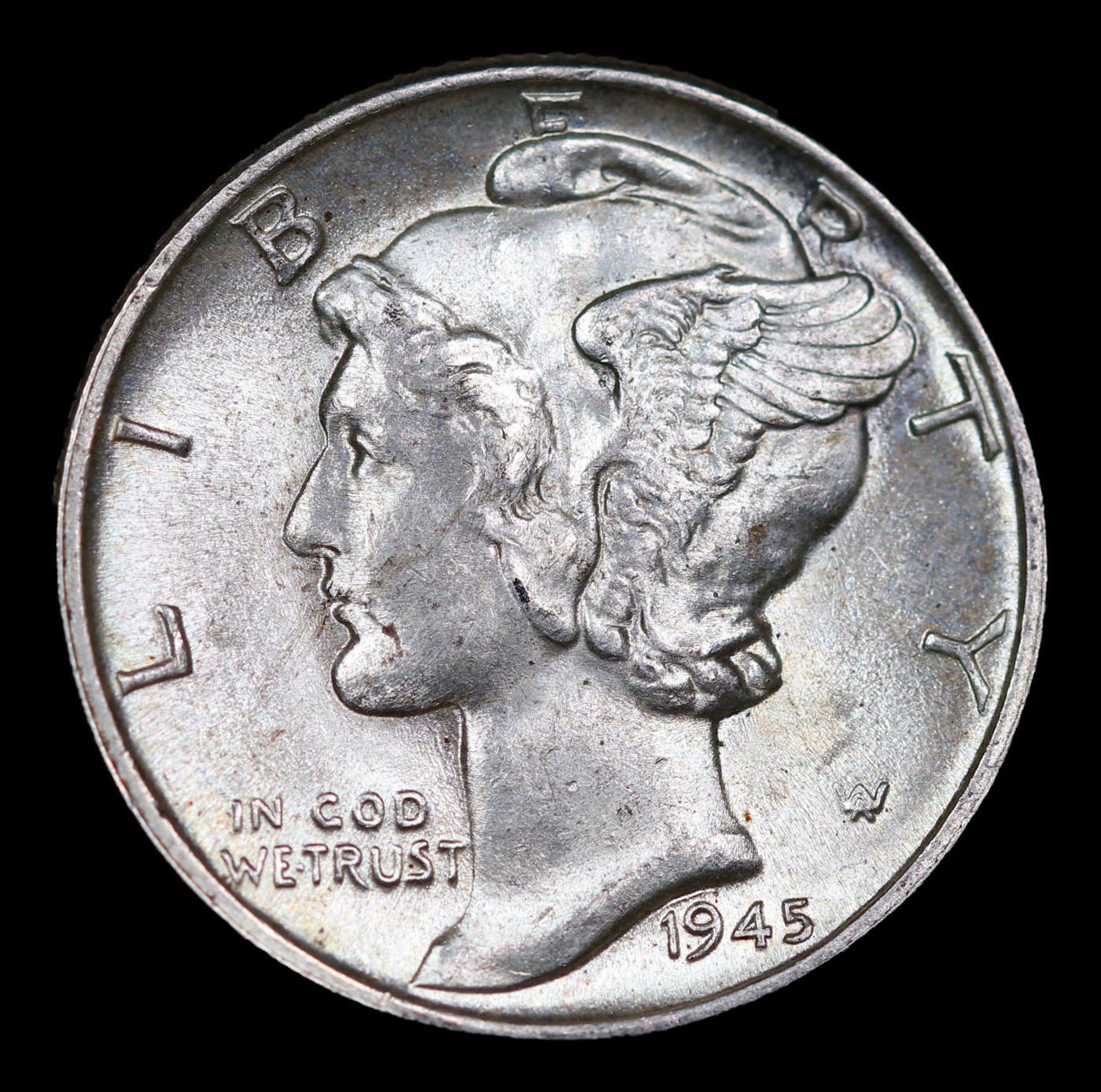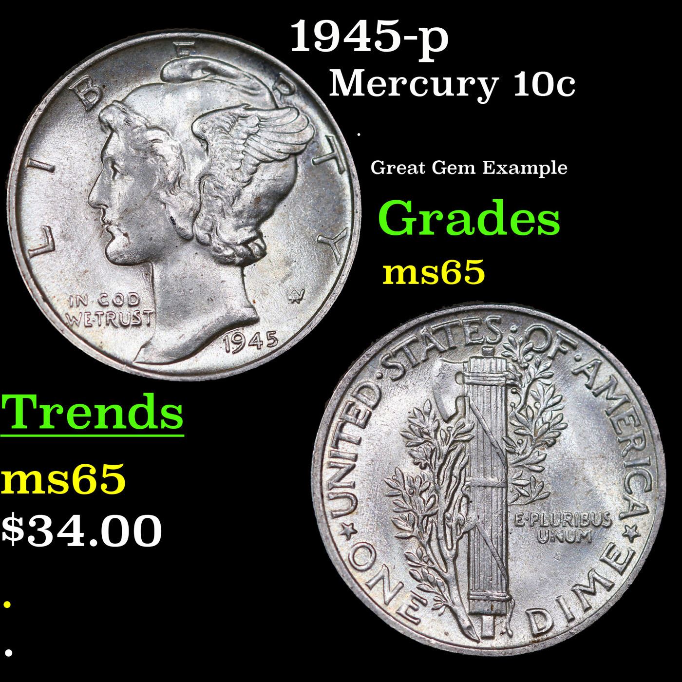 1945-p Mercury Dime 10c Grades GEM Unc.