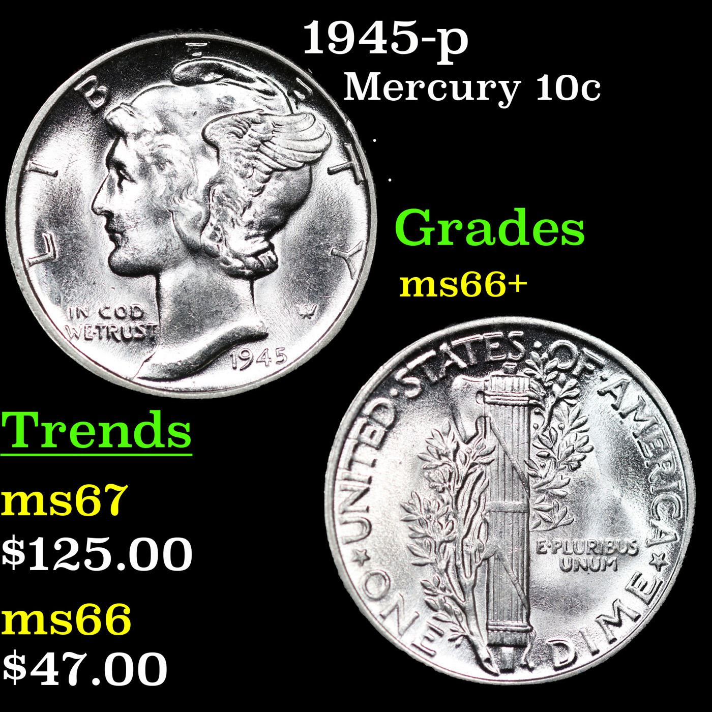 1945-p Mercury Dime 10c Grades GEM++ Unc.