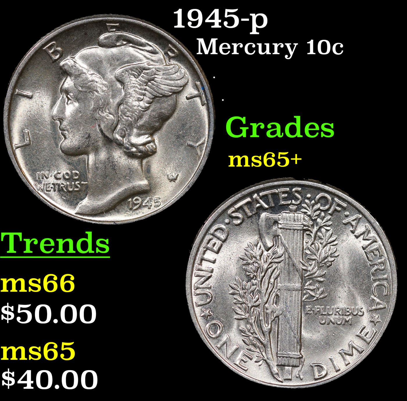1945-p Mercury Dime 10c Grades GEM+ Unc.