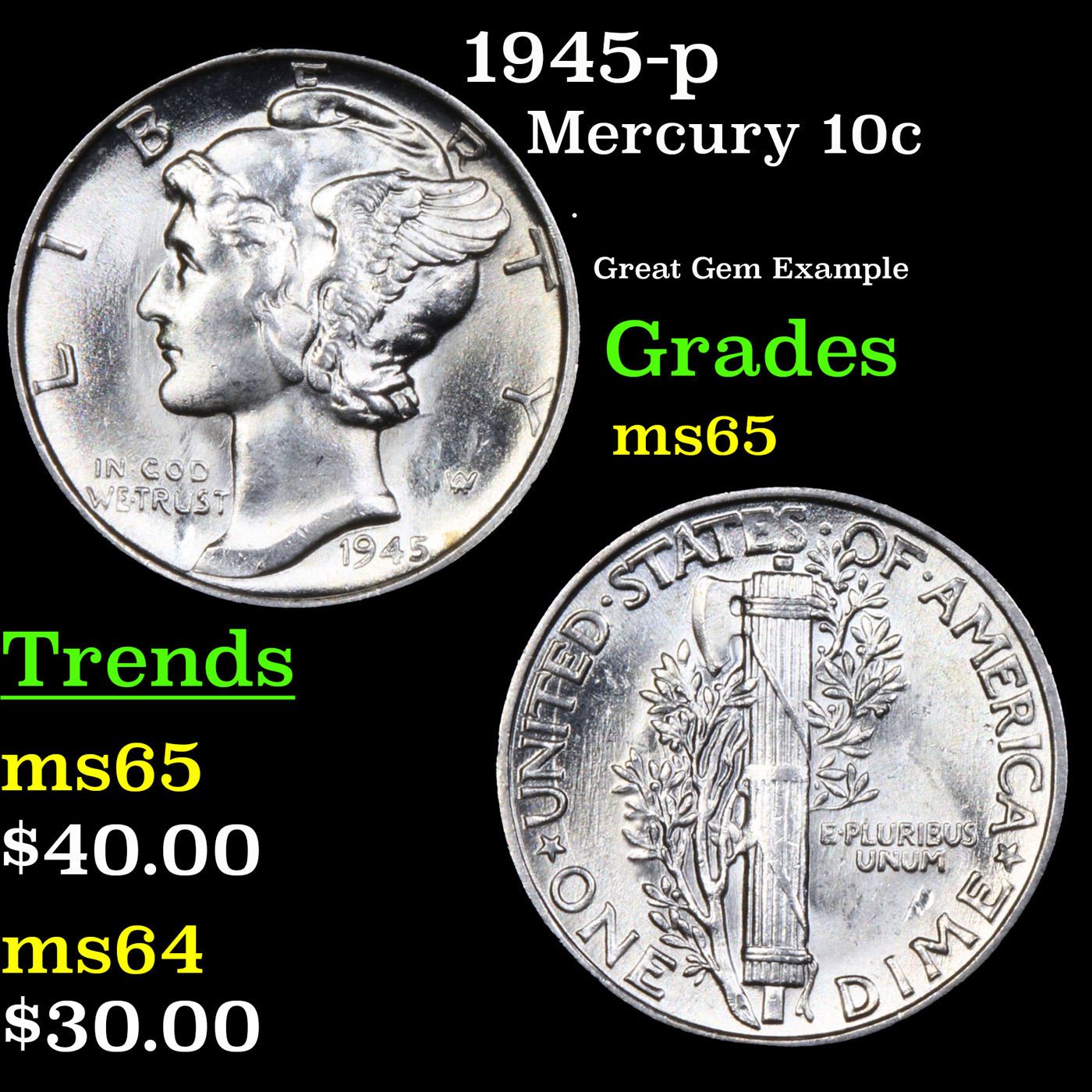1945-p Mercury Dime 10c Grades GEM Unc.