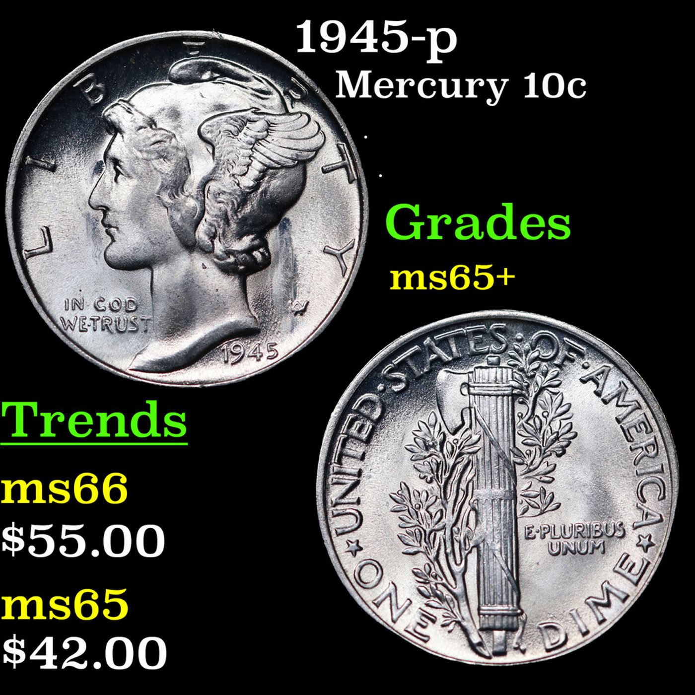 1945-p Mercury Dime 10c Grades GEM+ Unc.