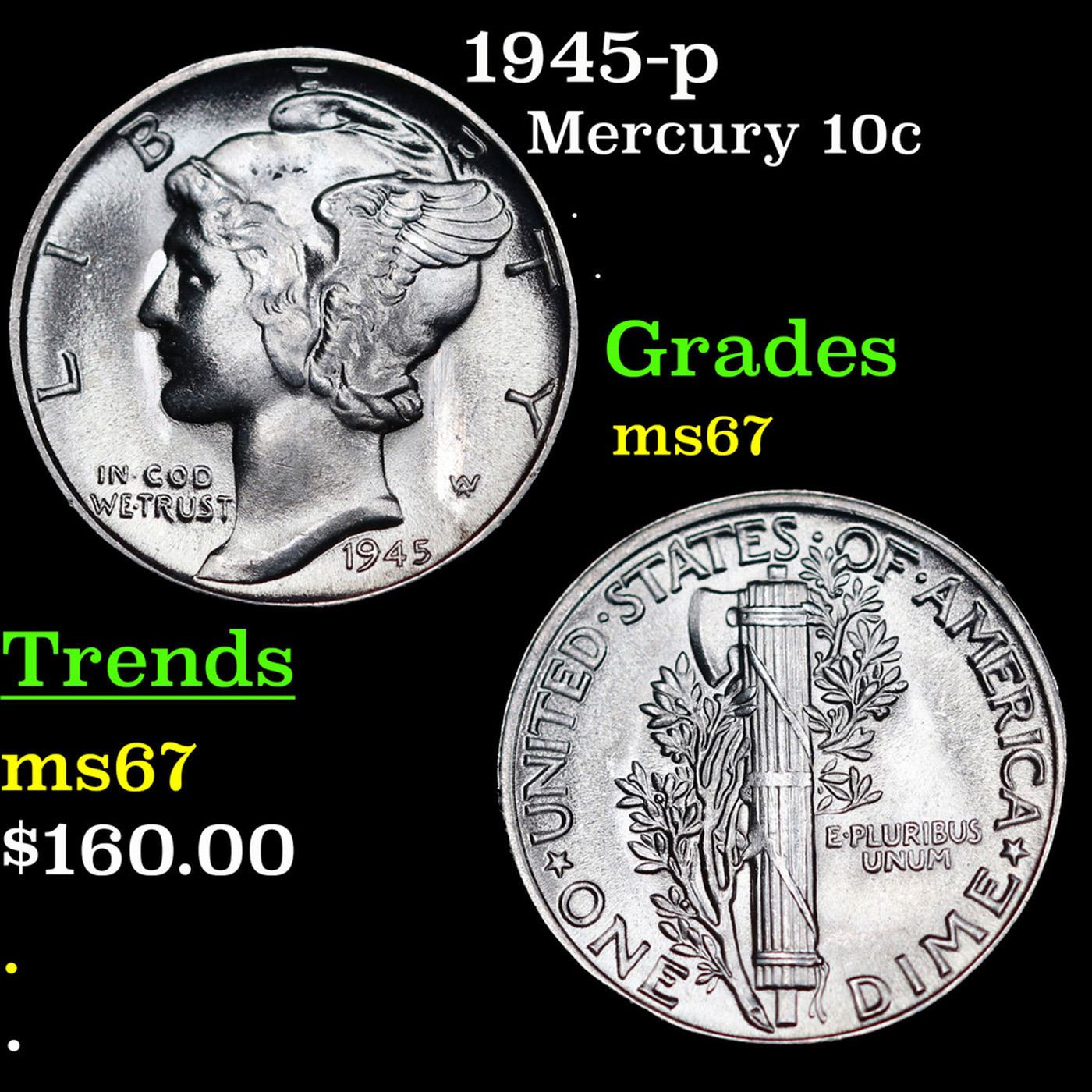 1945-p Mercury Dime 10c Grades GEM++ Unc.