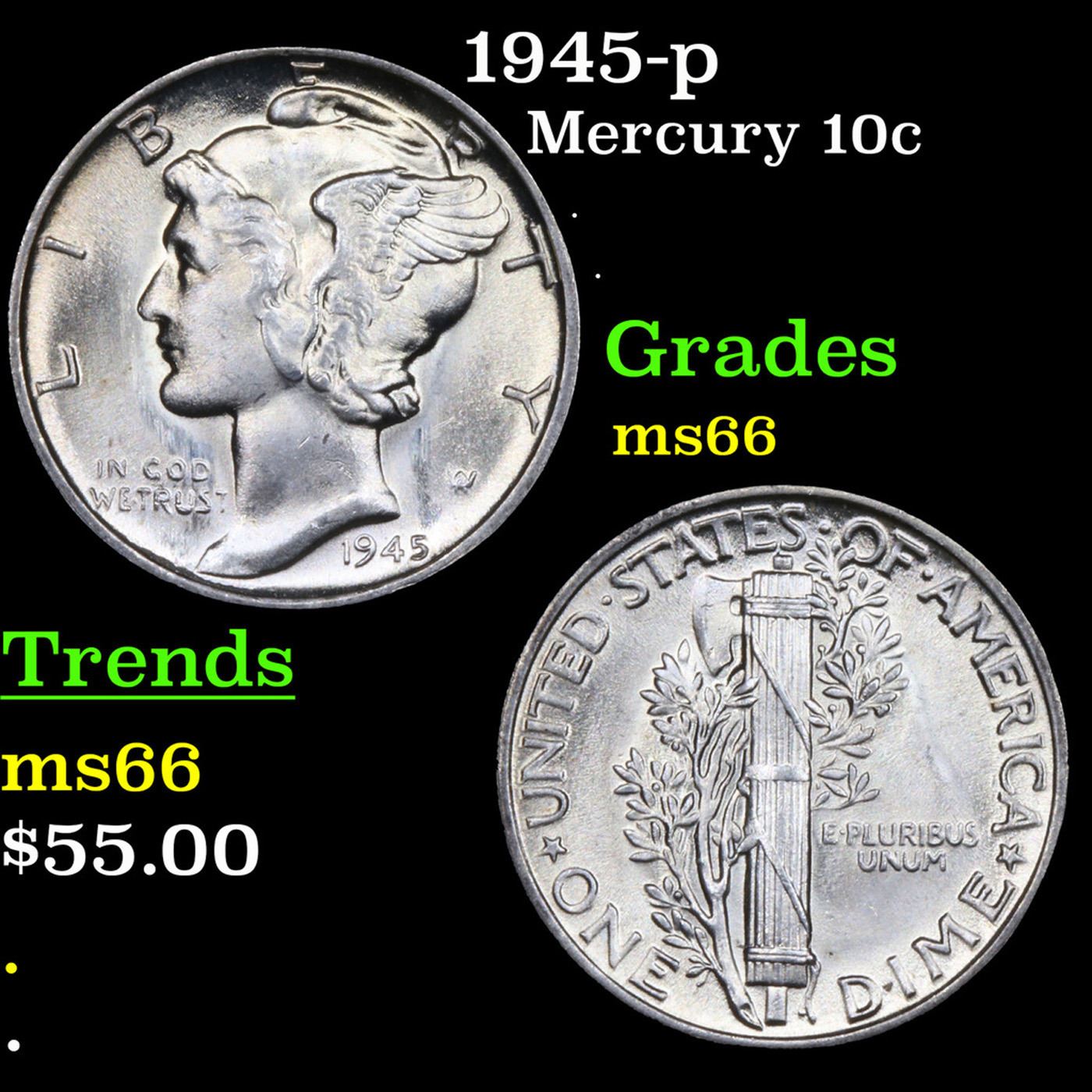 1945-p Mercury Dime 10c Grades GEM+ Unc.