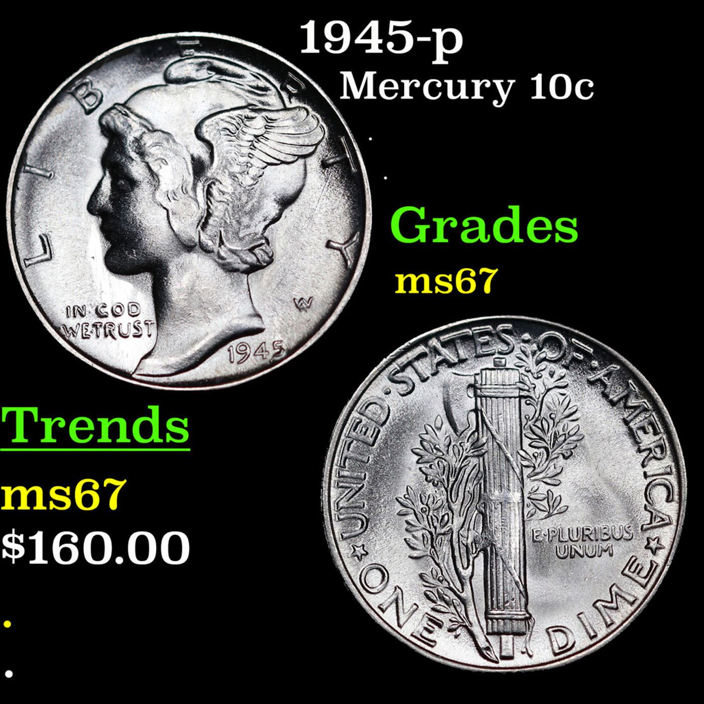 1945-p Mercury Dime 10c Grades GEM++ Unc.