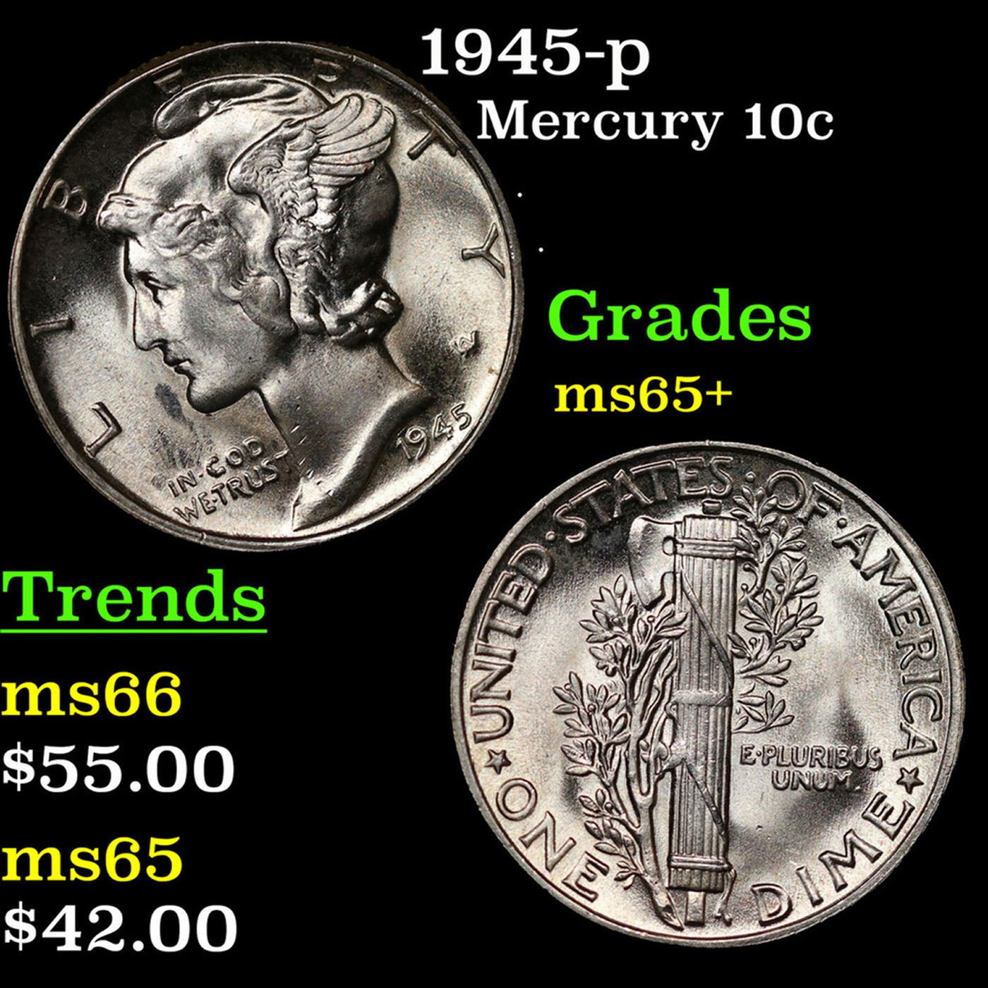 1945-p Mercury Dime 10c Grades GEM+ Unc.