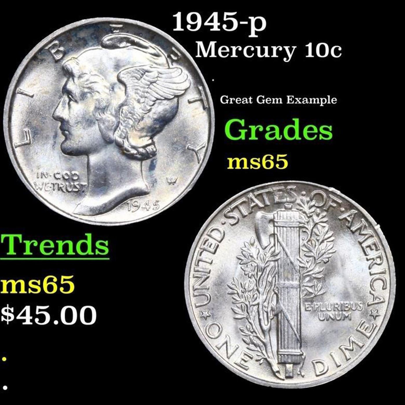 1945-p Mercury Dime 10c Grades GEM Unc.