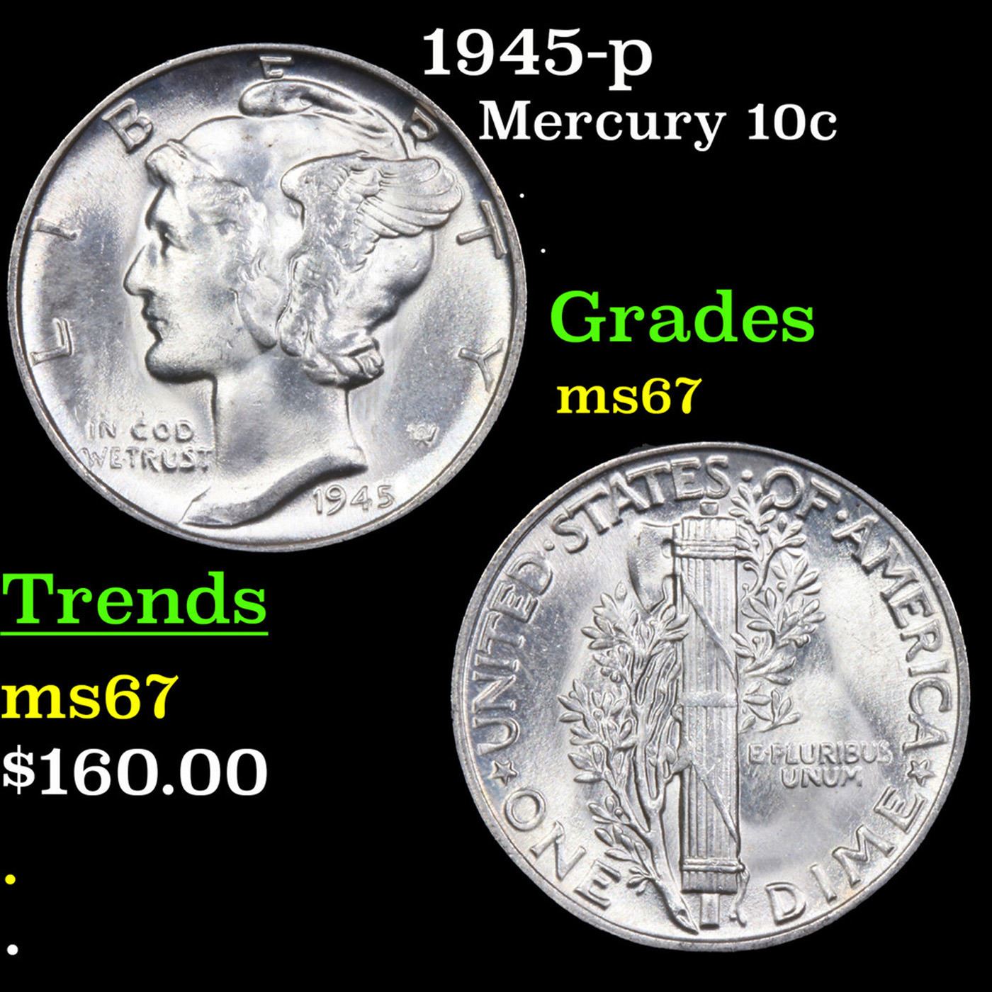 1945-p Mercury Dime 10c Grades GEM++ Unc.