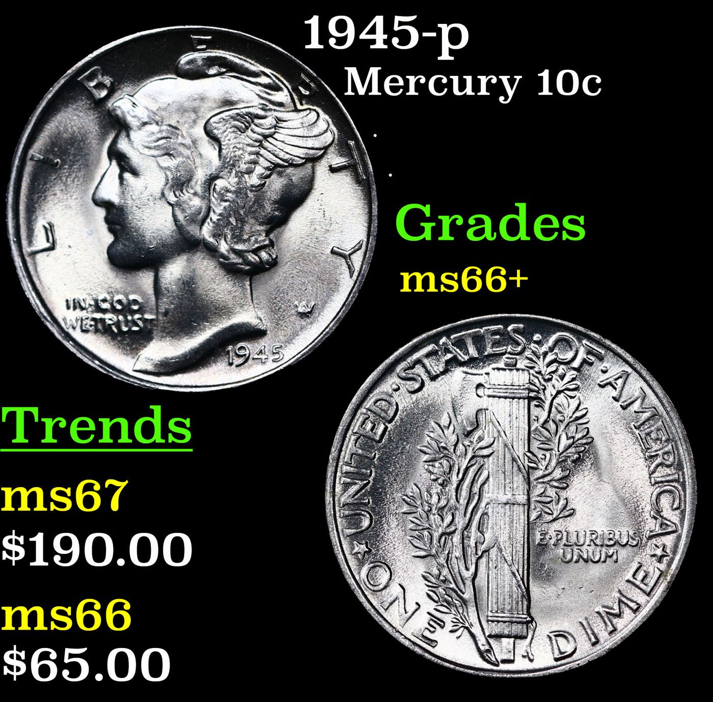 1945-p Mercury Dime 10c Grades GEM++ Unc.