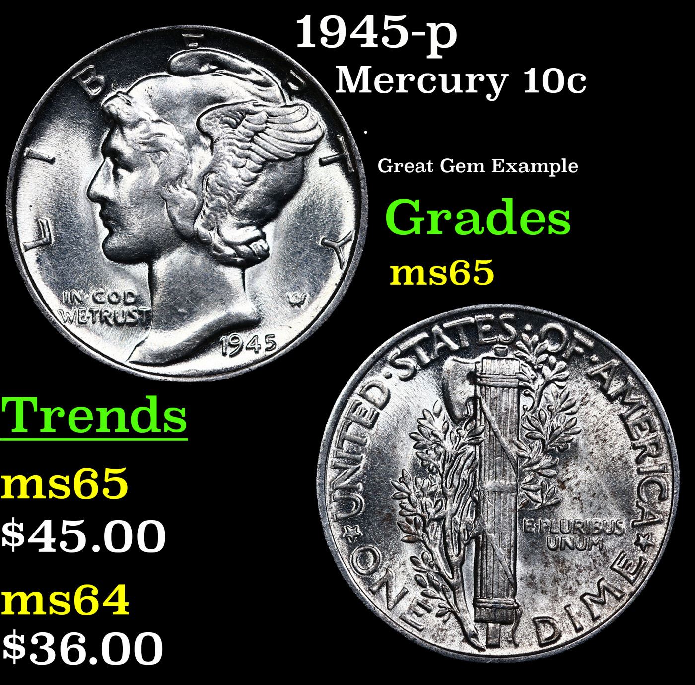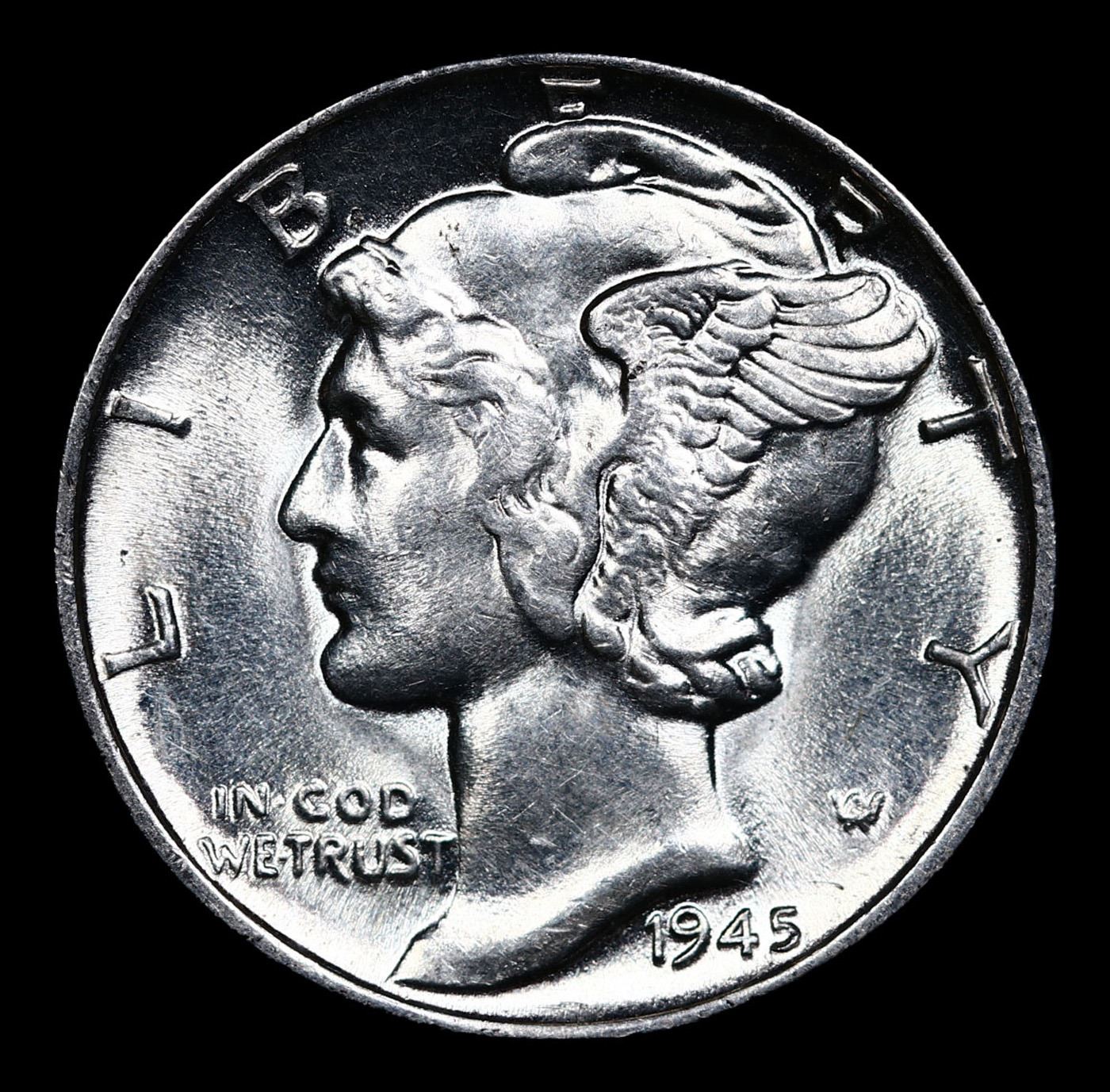 1945-p Mercury Dime 10c Grades GEM Unc.