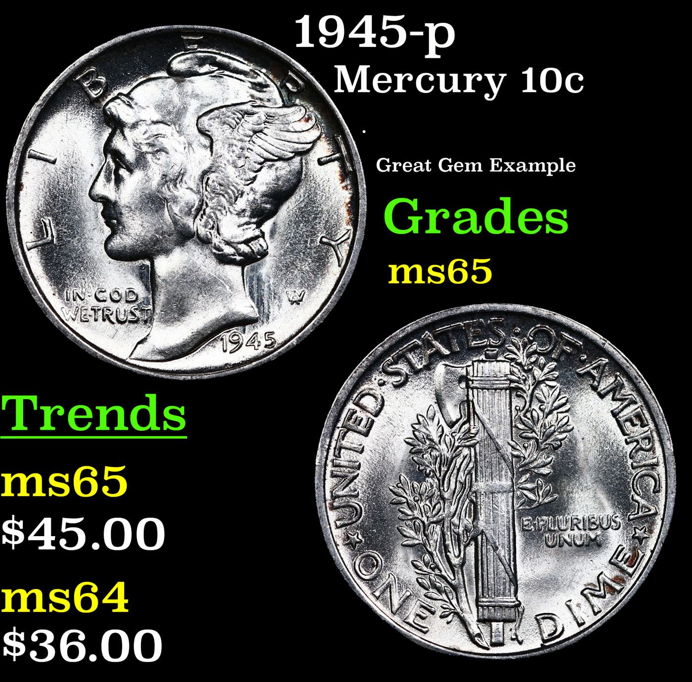 1945-p Mercury Dime 10c Grades GEM Unc.