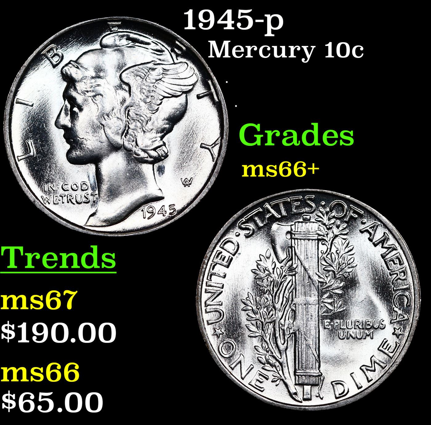 1945-p Mercury Dime 10c Grades GEM++ Unc.