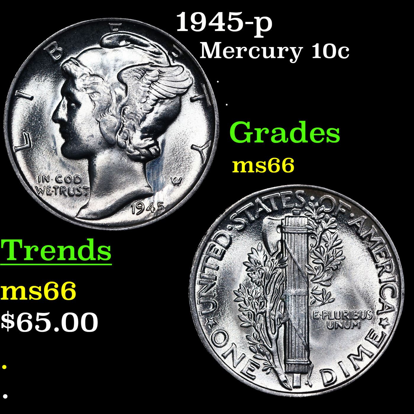 1945-p Mercury Dime 10c Grades GEM+ Unc.