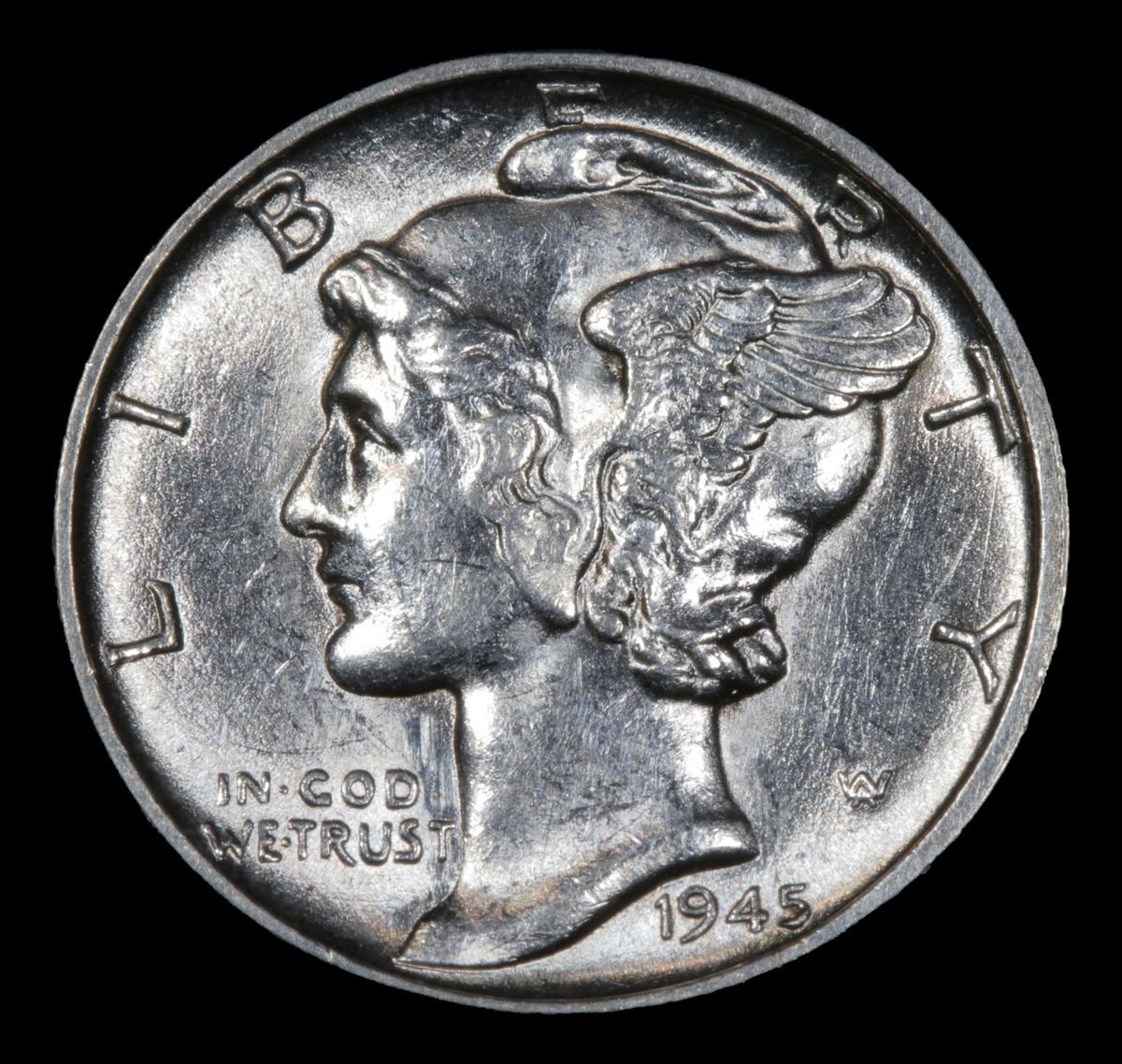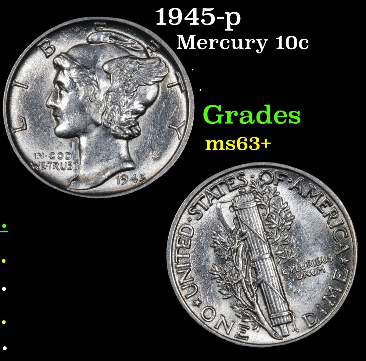 1945-p . . Mercury Dime 10c Grades Select+ Unc.