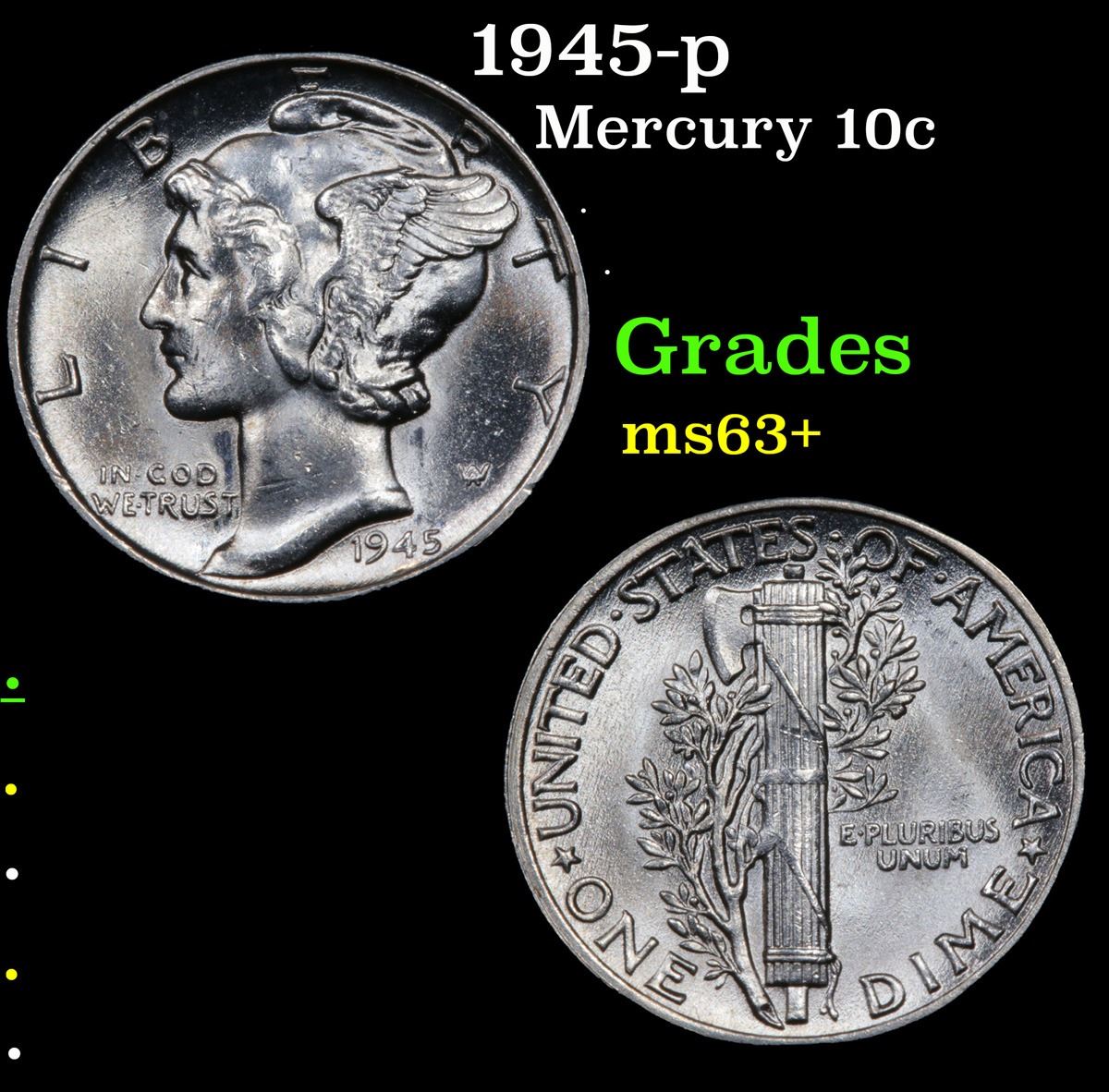 1945-p Mercury Dime 10c Grades Select+ Unc.