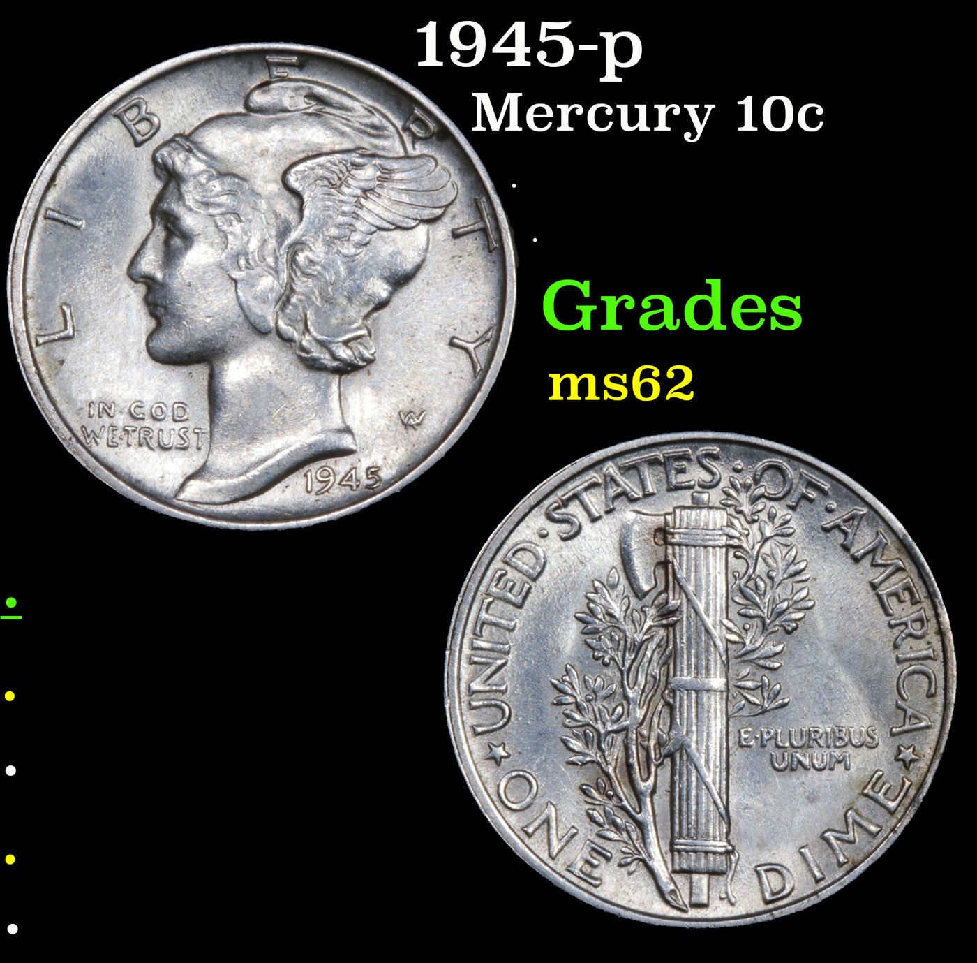1945-p Mercury Dime 10c Grades Select Unc.
