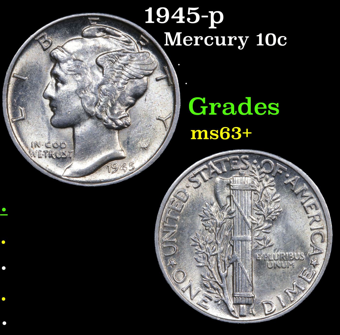 1945-p Mercury Dime 10c Grades Select+ Unc.