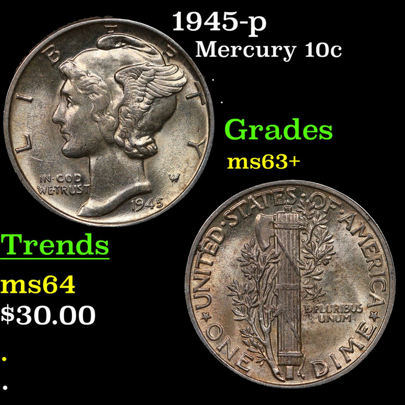 1945-p Mercury Dime 10c Grades Select+ Unc.