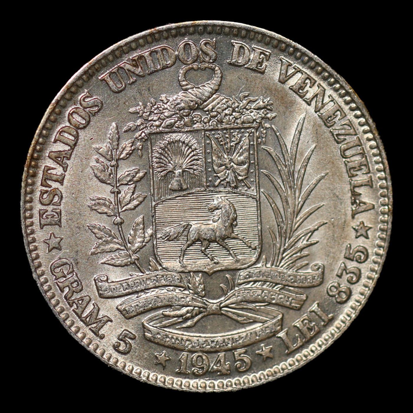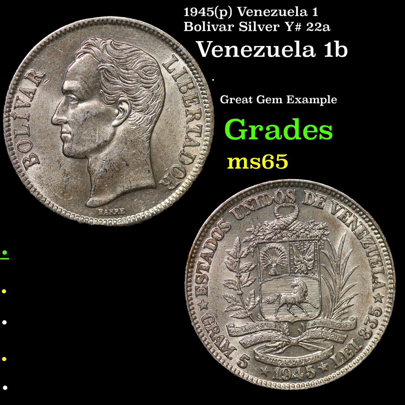 1945(p) Venezuela 1 Bolivar Silver Y# 22a Grades GEM Unc.