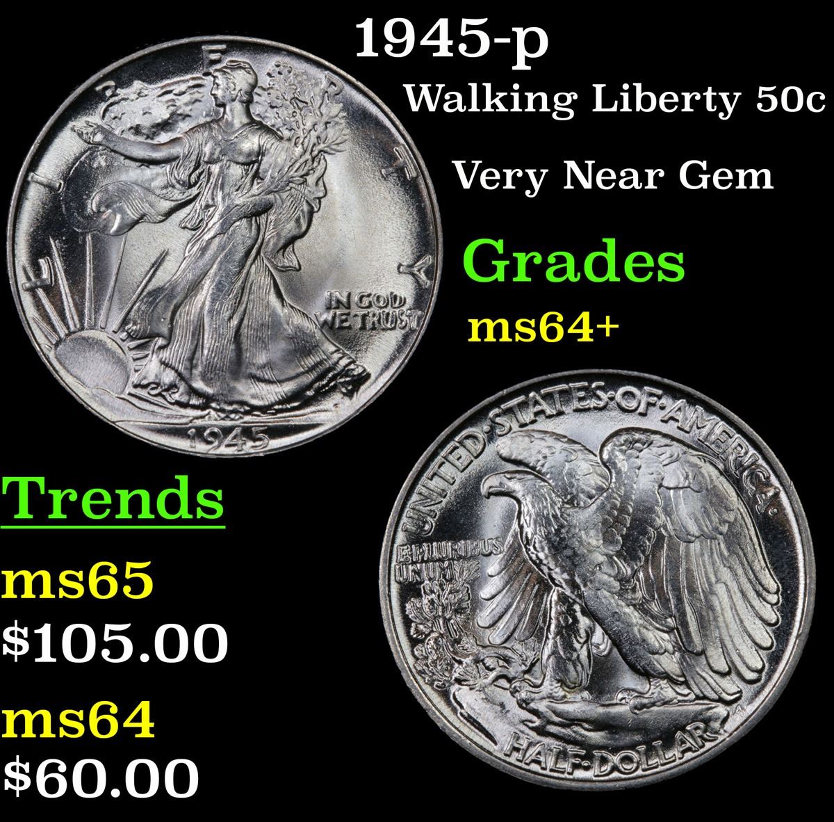 1945-p Walking Liberty Half Dollar 50c Grades Choice+ Unc.