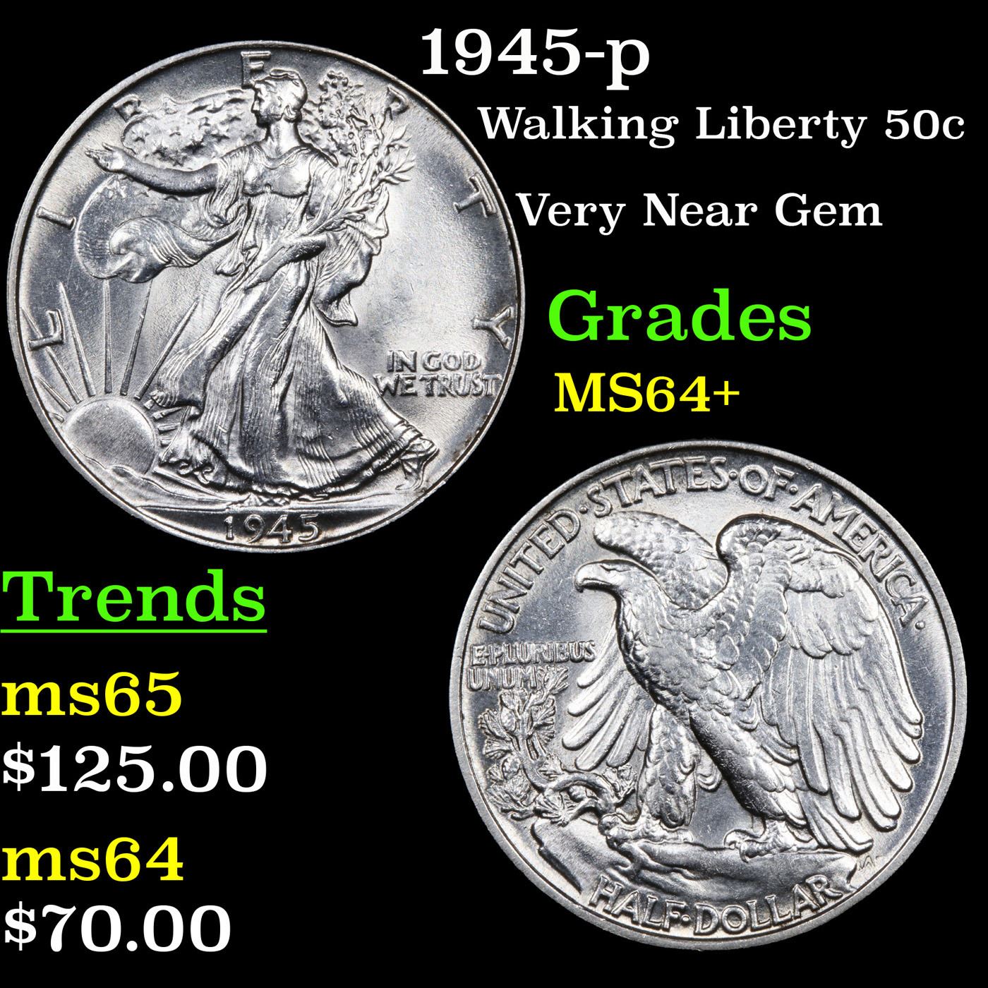 1945-p Walking Liberty Half Dollar 50c Grades Choice+ Unc.