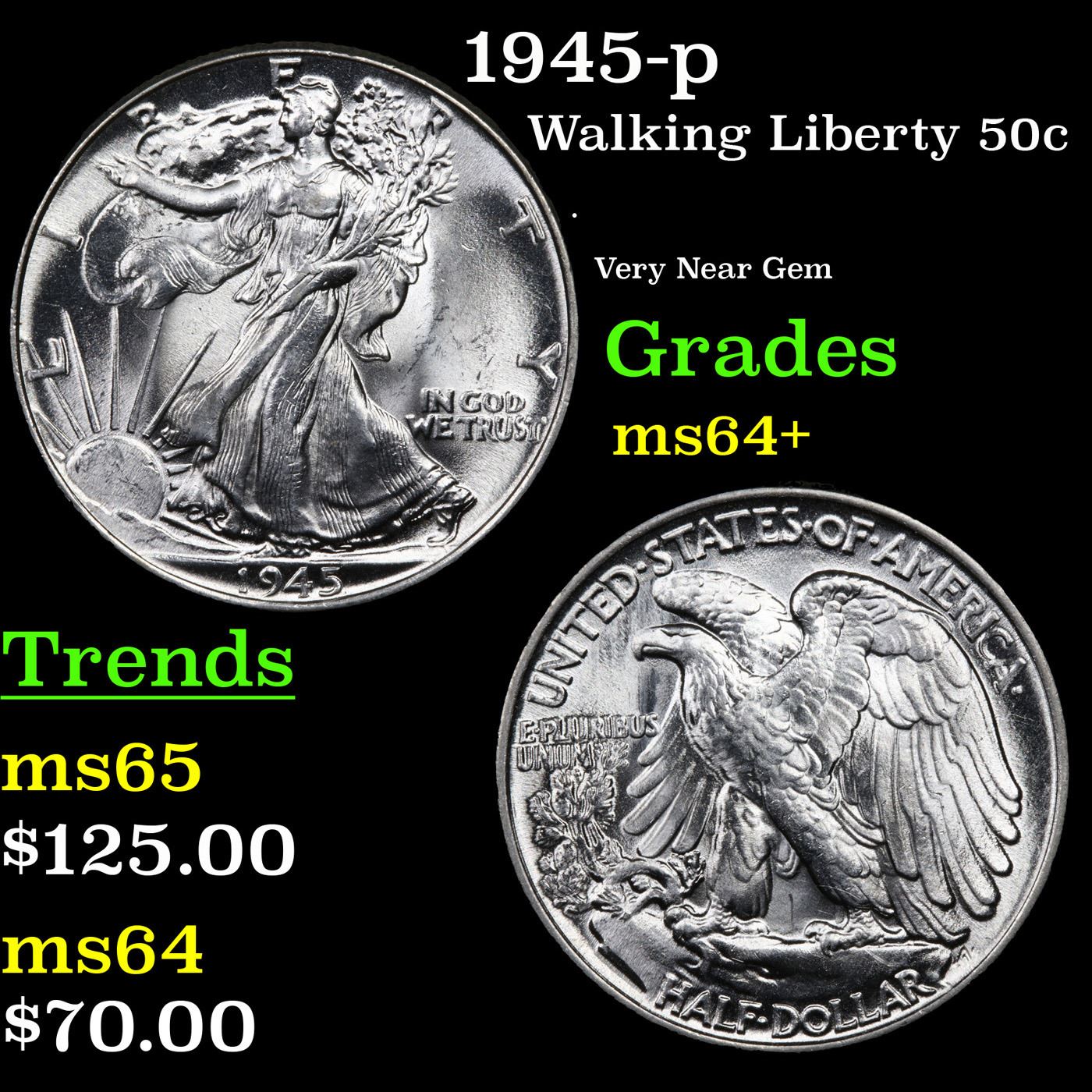 1945-p Walking Liberty Half Dollar 50c Grades Choice+ Unc.