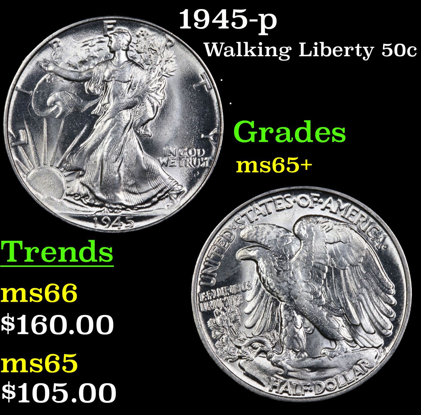 1945-p Walking Liberty Half Dollar 50c Grades GEM+ Unc.