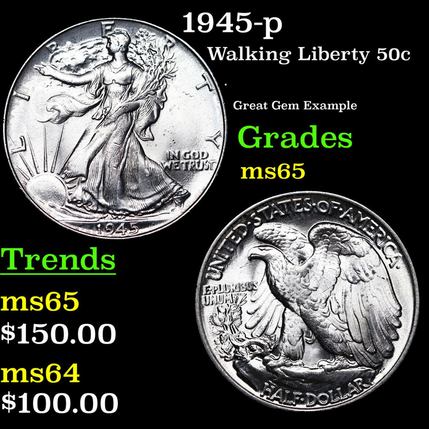 1945-p Walking Liberty Half Dollar 50c Grades GEM Unc.