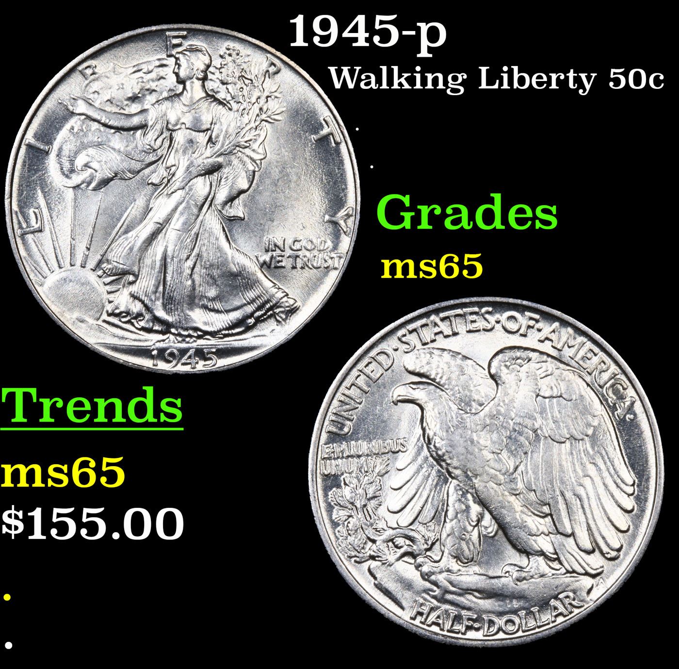 1945-p Walking Liberty Half Dollar 50c Grades GEM Unc.