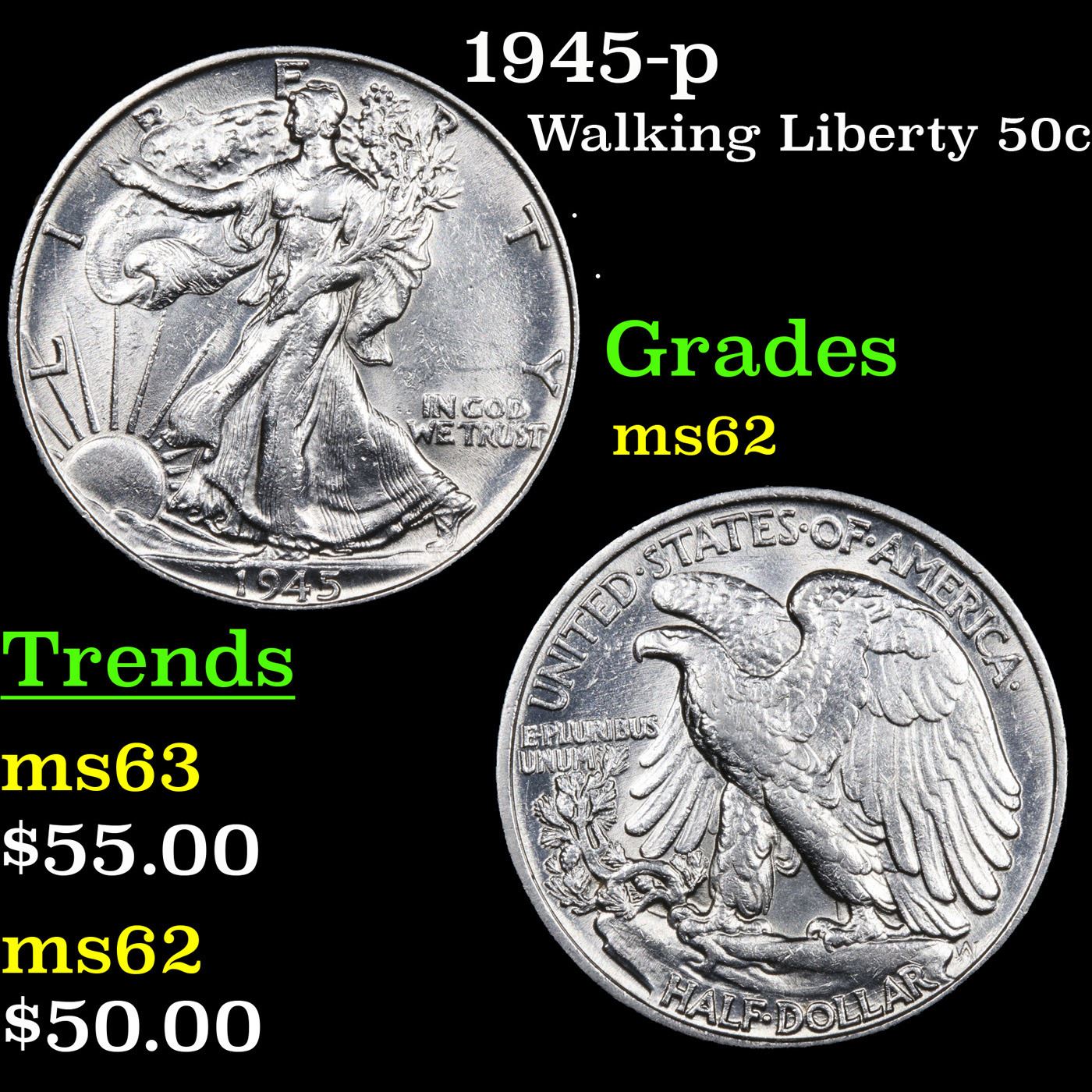 1945-p Walking Liberty Half Dollar 50c Grades Select Unc.