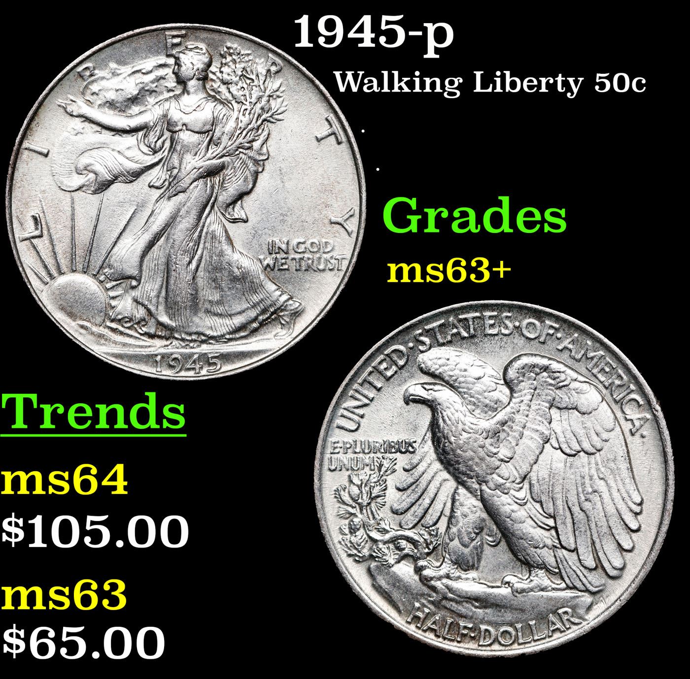 1945-p Walking Liberty Half Dollar 50c Grades Select+ Unc.
