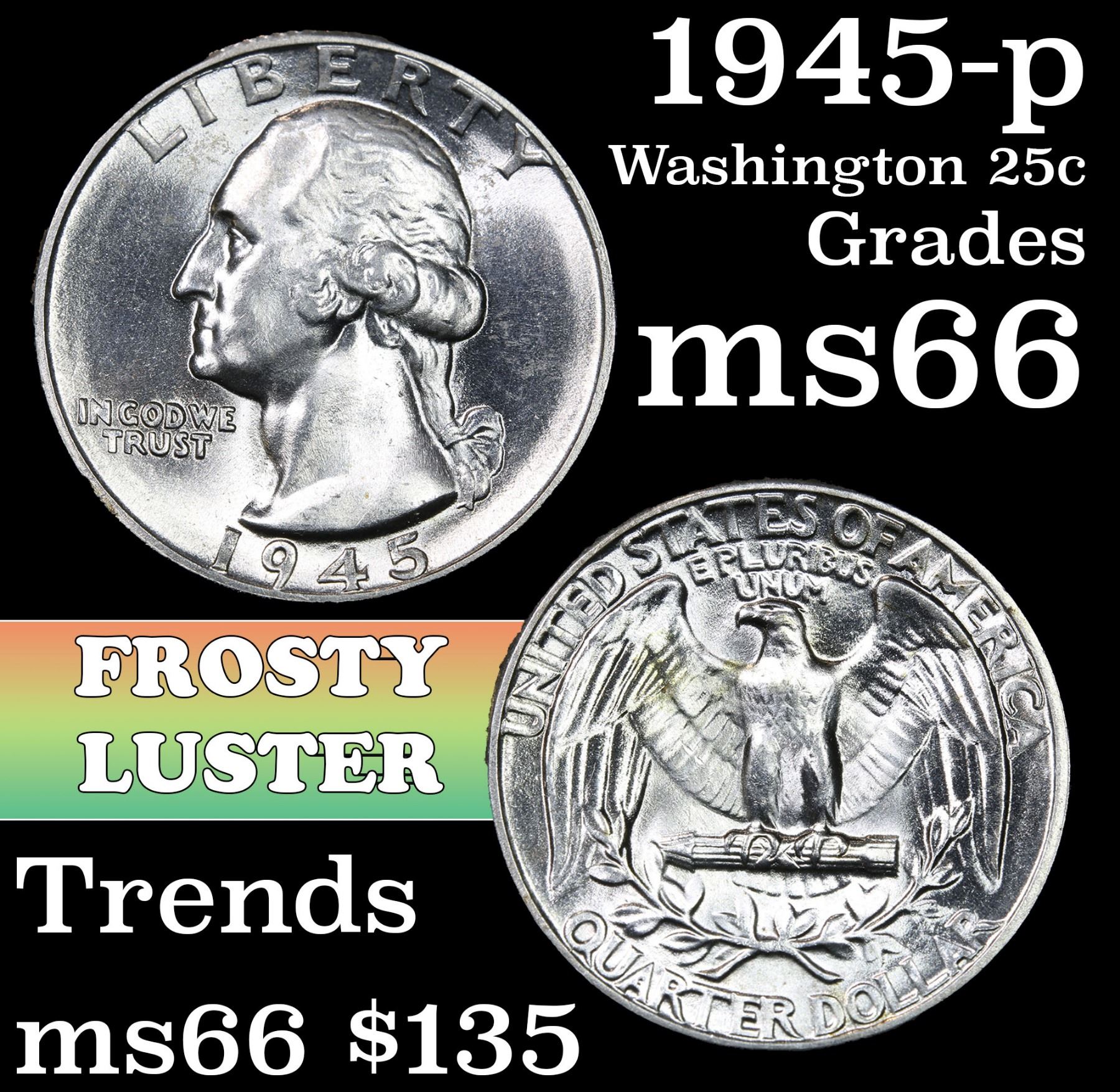 1945-p Washington Quarter 25c Grades GEM+ Unc.