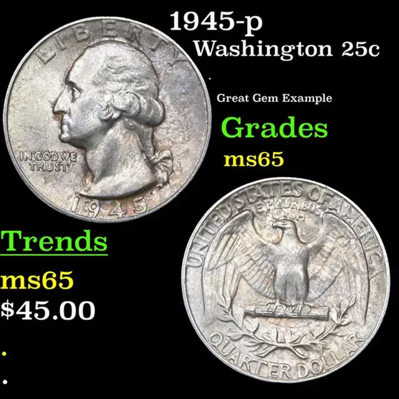 1945-p Washington Quarter 25c Grades GEM Unc.
