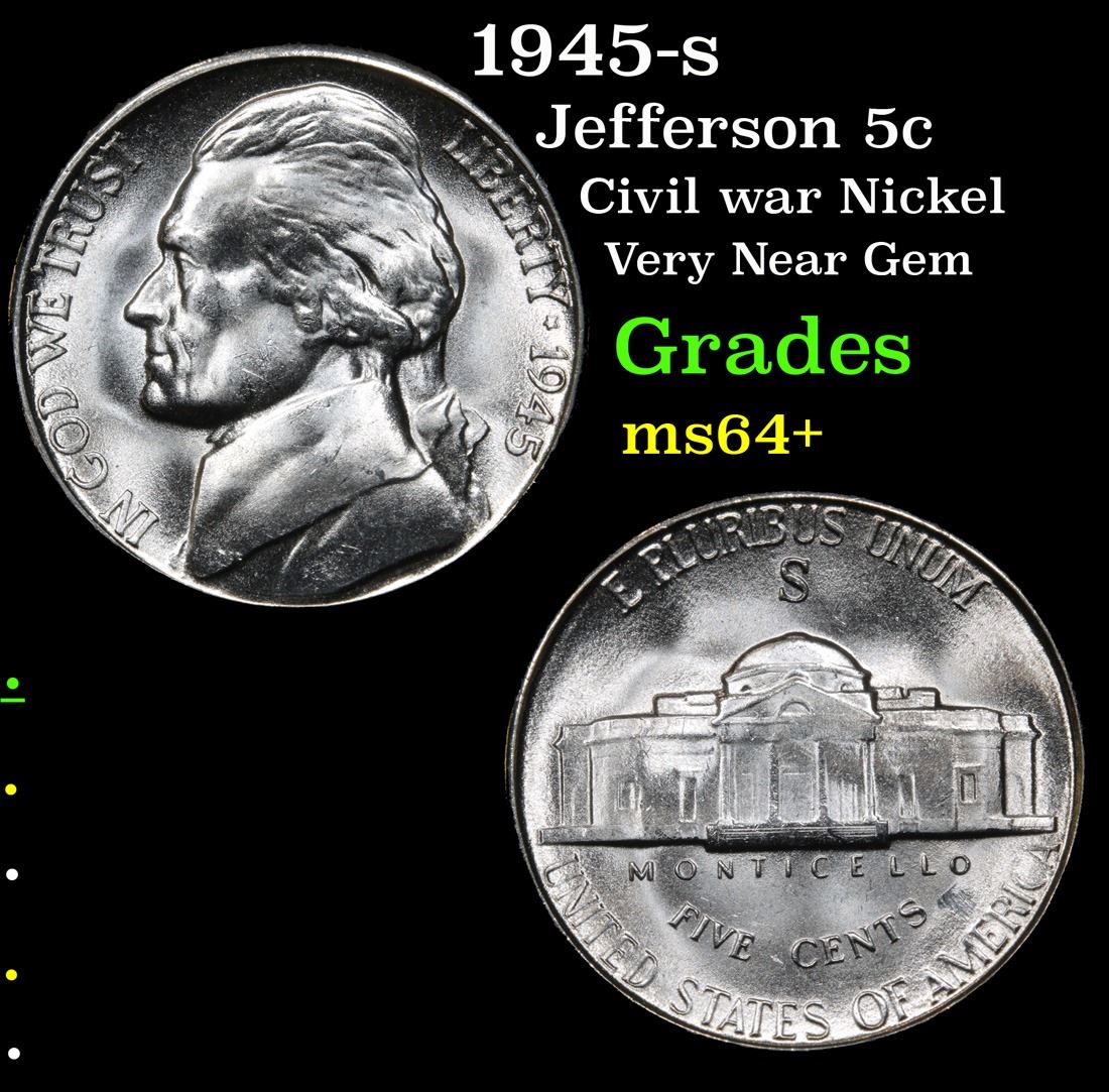 1945-s Civil war Nickel Very Near Gem Jefferson Nickel 5c Grades Choice+ Unc.
