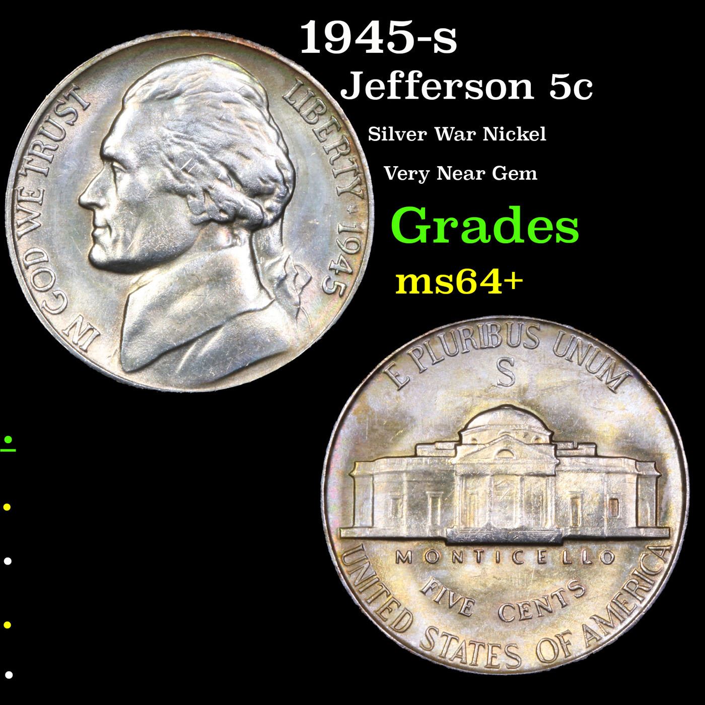 1945-s Jefferson Nickel 5c Grades Choice+ Unc.