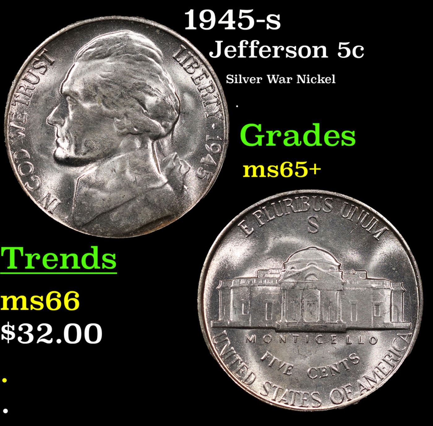 1945-s Jefferson Nickel 5c Grades GEM+ Unc.