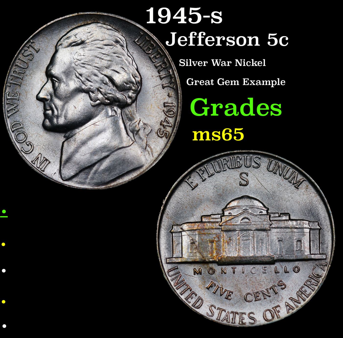 1945-s Jefferson Nickel 5c Grades GEM Unc.