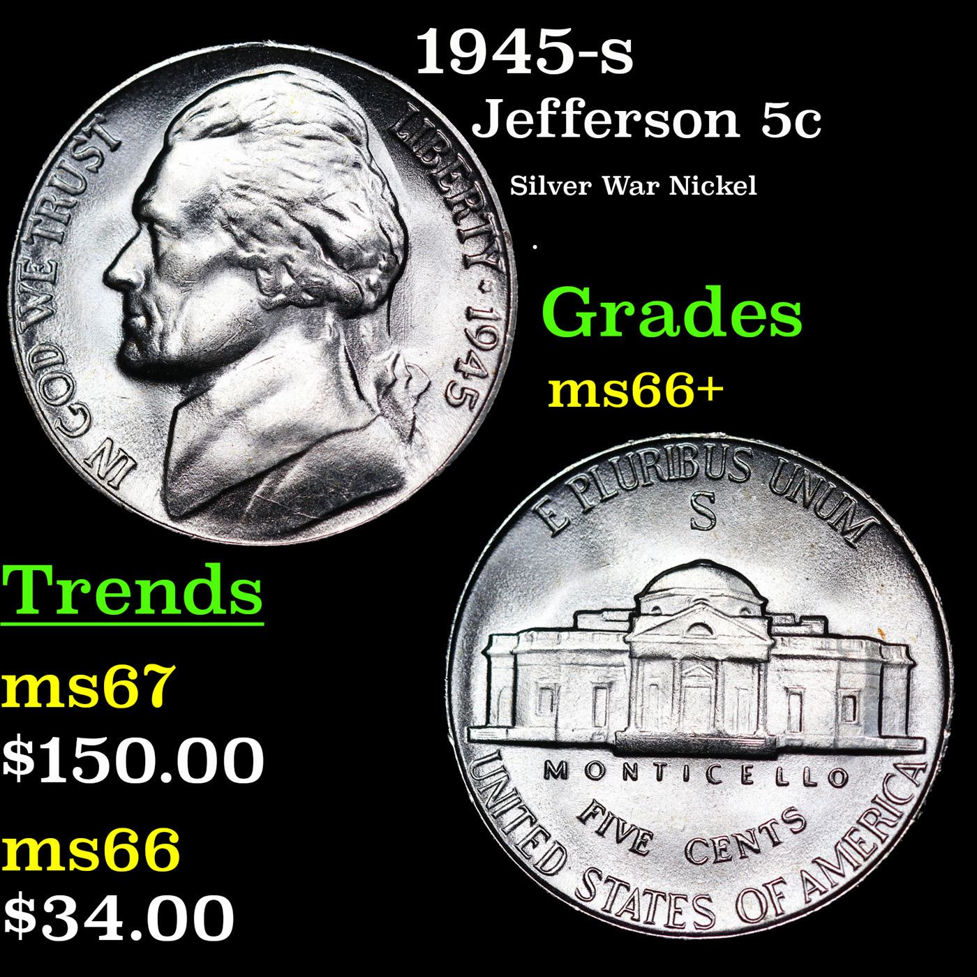 1945-s Jefferson Nickel 5c Grades GEM++ Unc.