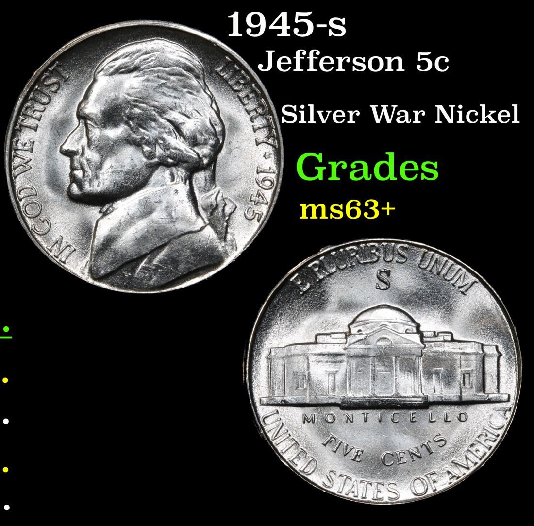 1945-s Silver War Nickel . Jefferson Nickel 5c Grades Select+ Unc.