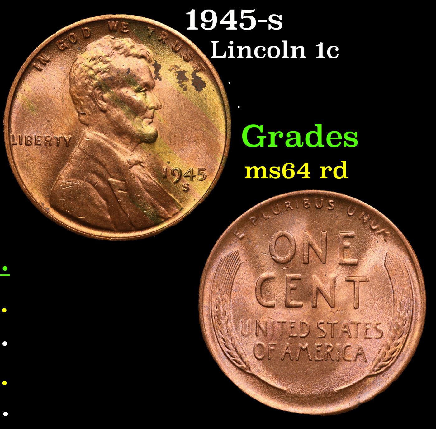 1945-s Lincoln Cent 1c Grades Choice Unc RD.