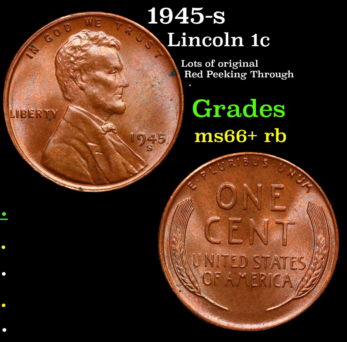 1945-s Lincoln Cent 1c Grades GEM++ RB.