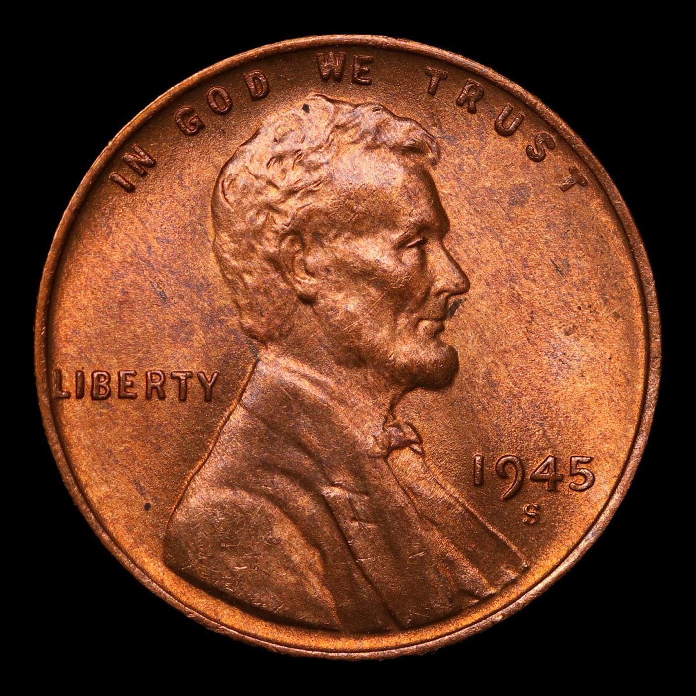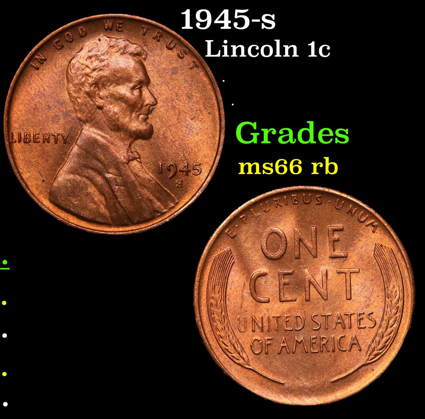 1945-s Lincoln Cent 1c Grades GEM+ Unc RB.