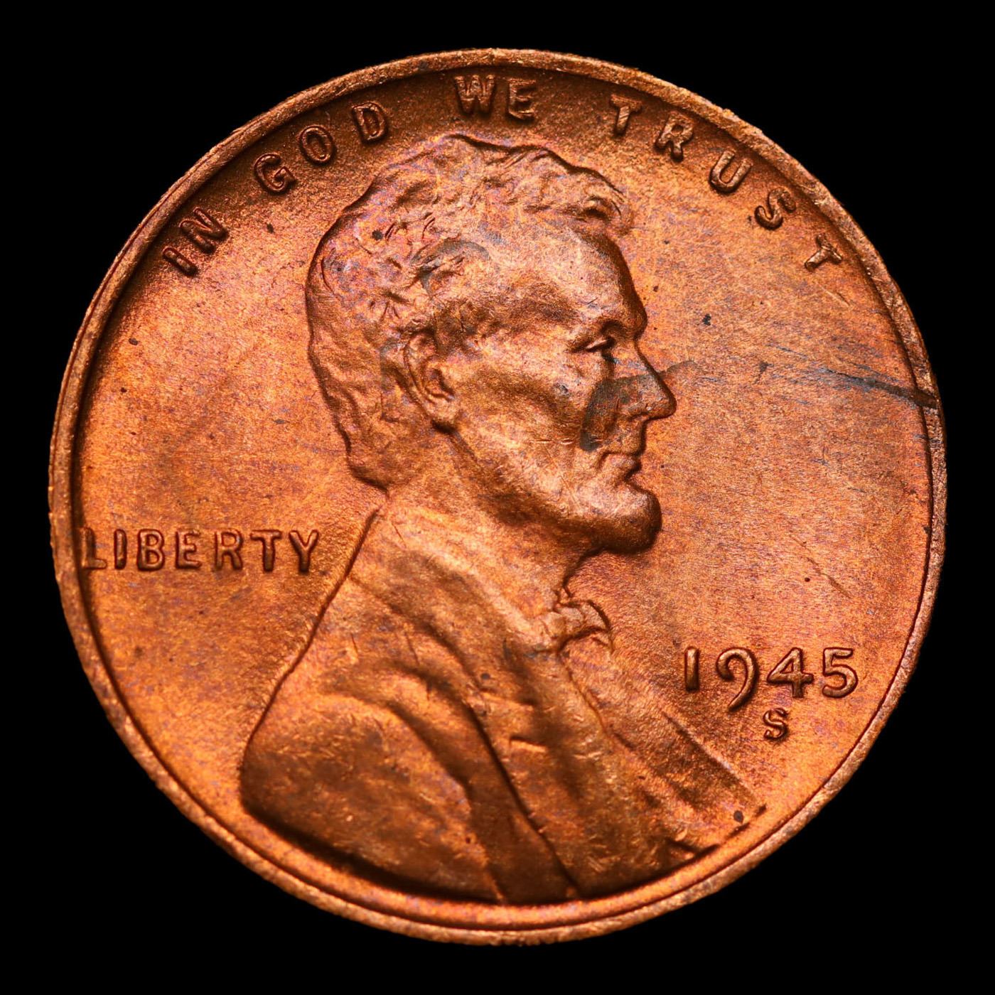 1945-s Lincoln Cent 1c Grades GEM+ Unc RB.