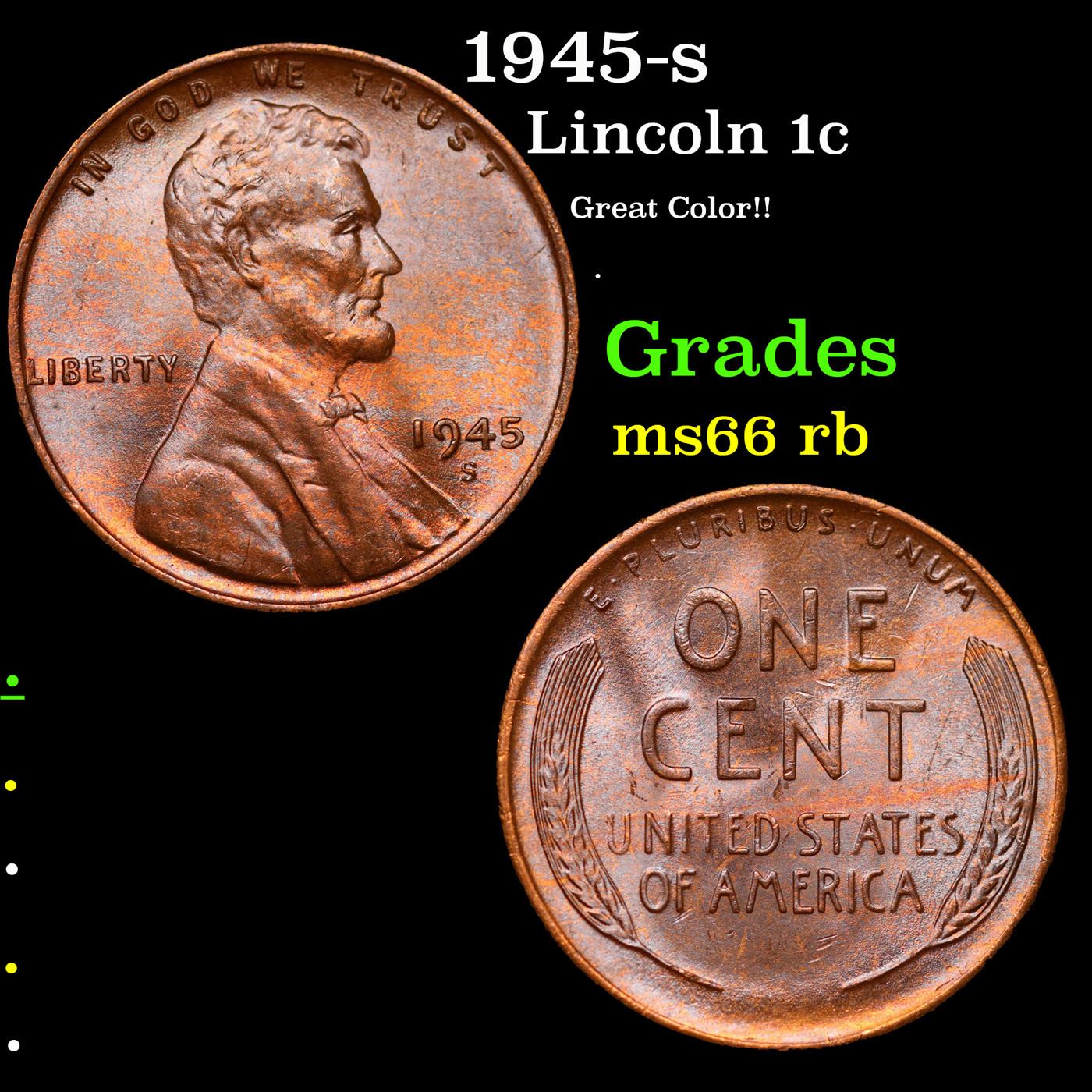 1945-s Lincoln Cent 1c Grades GEM+ Unc RB.