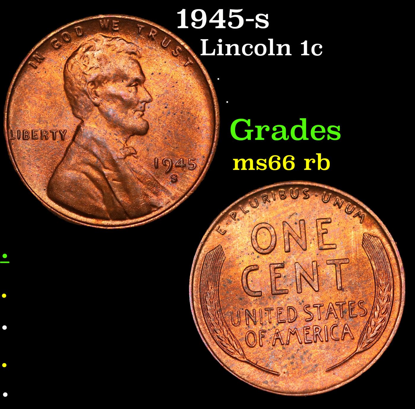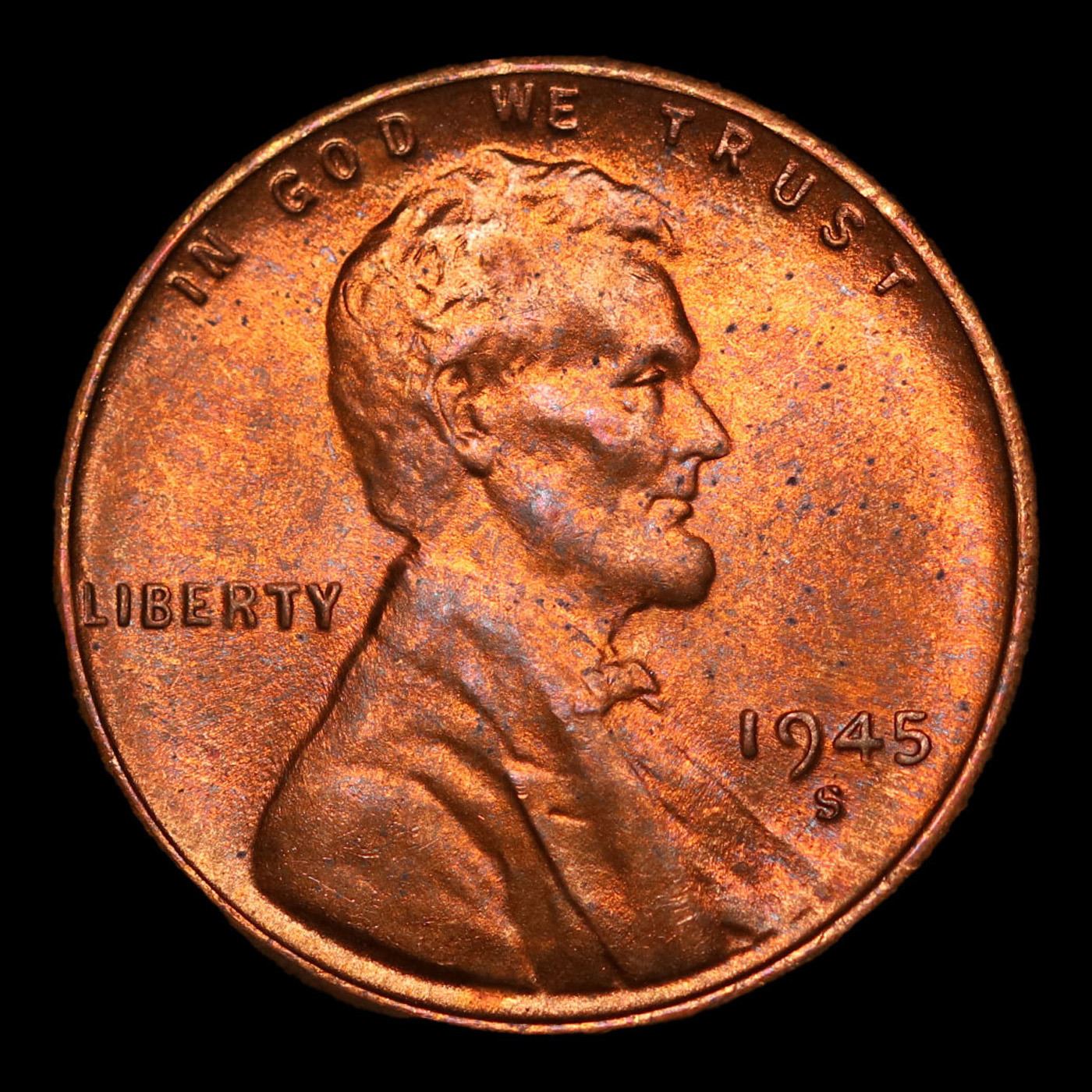 1945-s Lincoln Cent 1c Grades GEM+ Unc RB.
